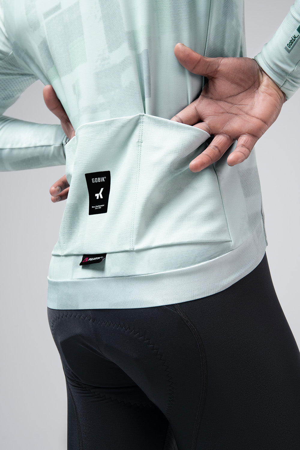 Para ayudar a eliminar el calor residual en situaciones de esfuerzo se utilizan soluciones estratégicas en las áreas donde es menor la incidencia del viento. En la parte trasera se mantiene un tejido de alto nivel de transpirabilidad, mientras que en las axilas se instalan paneles mesh para una ventilación extra.